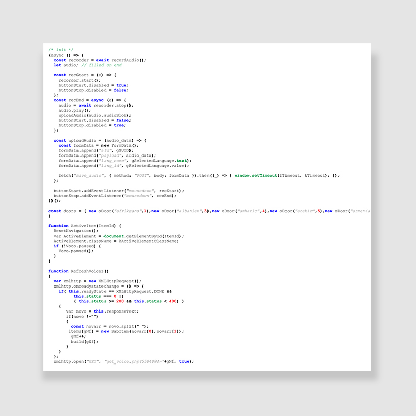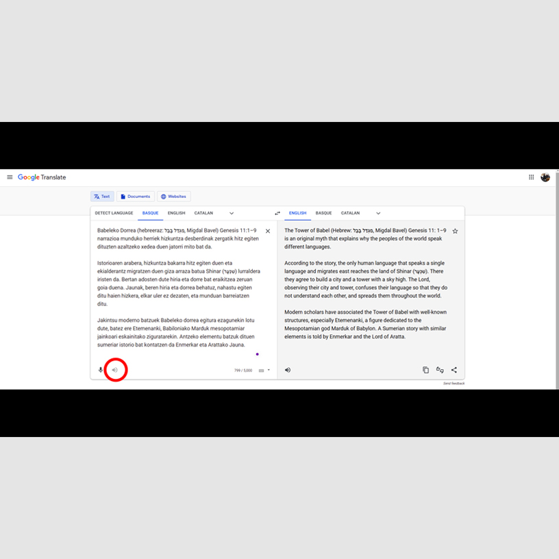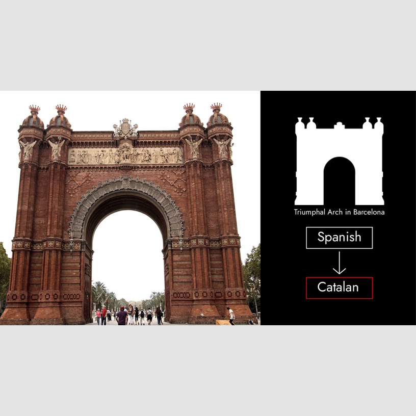 When I was working on the creation of bA(I)bylon, I encountered the fact that Google still does not allow listening to many minority languages, such as Basque, Makedonian, Tatar, Welsh, Zulu, Yoruba and other languages. This can be seen as some form of discrimination against minorities 6. Also not without politics. When I was looking for a picture of Spain Gate, Google immediately gave me Triumphal Arch in Barcelona. I put this character in Spanish. Then I found out that the gate are in Barcelona, and they speak the Catalan language there. I had to put the gate on Catalan, and look for another symbol in Spanish 7.