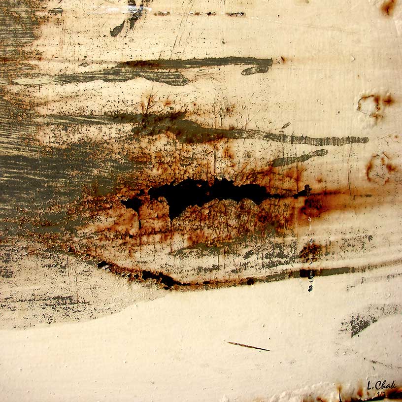 Lilia Chak registers the Moments. In her works, the accidental, the routine, the perishable becomes aesthetically and compositionally determined, suddenly gaining a new life. Thousands of people did pass by a rusty waterspout, by a door with the paint peeling off, by a fence drawn in and out by kids, by a heap of rubbish. But when along came the artist, and saw it, photographed, enlarged, and framed – it became a good abstract painting.Indeed, my works can be perceived as abstract painting, admits Lilia Chak. What is similar to the 'classical' abstract painting, is their objectless and the absence of any narrative. If you remember the works of Kandinsky, Malevich, Klee and other fathers of abstract painting in early 20th century, it is clear that for them a realistic object or event isonly a trigger or a stimulus for depiction, and it is 'broken and blended' during the work onpainting. As a result, what is left after the object or event is just a subjective feeling.