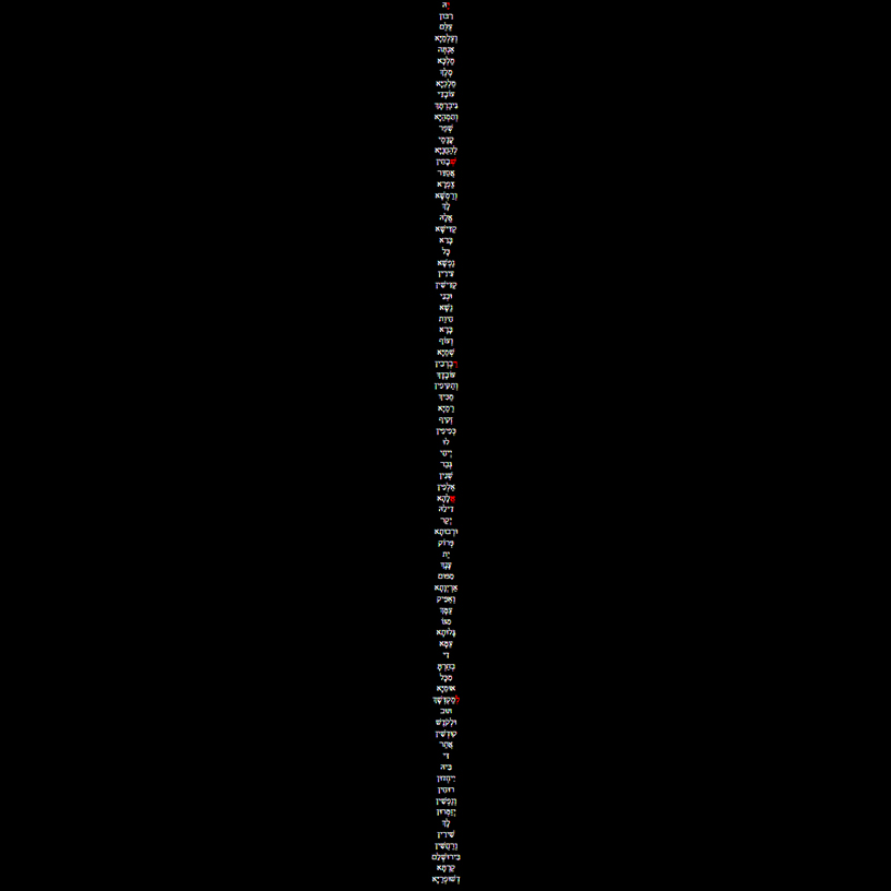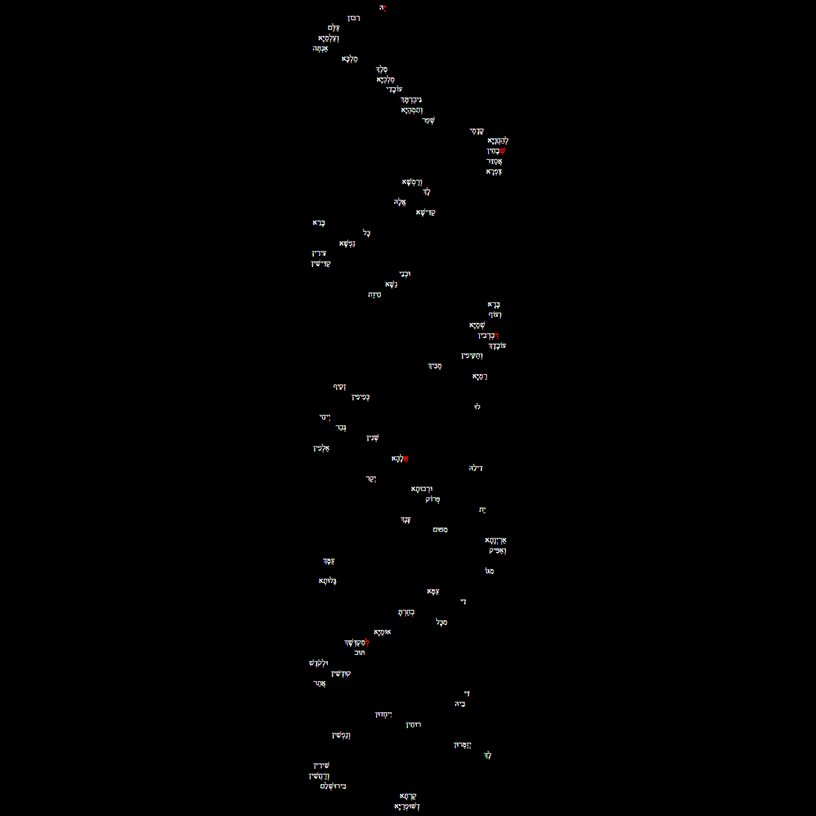 I have started working on the “Piyyut Coding” series in 2023. While studying ancient Jewish poetic works, I discovered a whole series of wonderful song-verses written by poets at different times in different countries of the Jewish Diaspora. Why did I combine them into a single series? The poems share a mystical and esoteric perspective on existence, and they all employ ACROSTIC composition. I’m intrigued by the idea of merging modern technology with medieval poetry – an era when cultural heritage was shaped by the limitations of reproduction, making each performance a unique and real-time experience. That's why I chose the opportunities that Generative art provides. The movement of words creates a unique choreography for writing an ACROSTIC each time the program is launched. Thus, each animation scene exists only in a single copy. Each work is the result of code execution and does not imply the preservation of an unchanged image or video. The innovation of this project lies in the fact that it changes the roles and ideas created decades earlier in the new “coded” reality. The “artificial”, which is represented in the work by computer code, behaves like a “living” organism, changing the structure of the animation and video every time it starts. At the same time, the recording of “live” voice and music always remains unchanged. In this way, we can note a change in previously established ideas. All animation scenes are “drawn” with a specific color, which together creates a multi-colored rainbow of the work. The music reflects the diversity of ancient and modern Jewish melodies. Spectators will hear Sephardic and Ashkenazi performances of poetic works. The program for all parts was coded by Alex Chak. The musical performance of all poems is in the public domain.